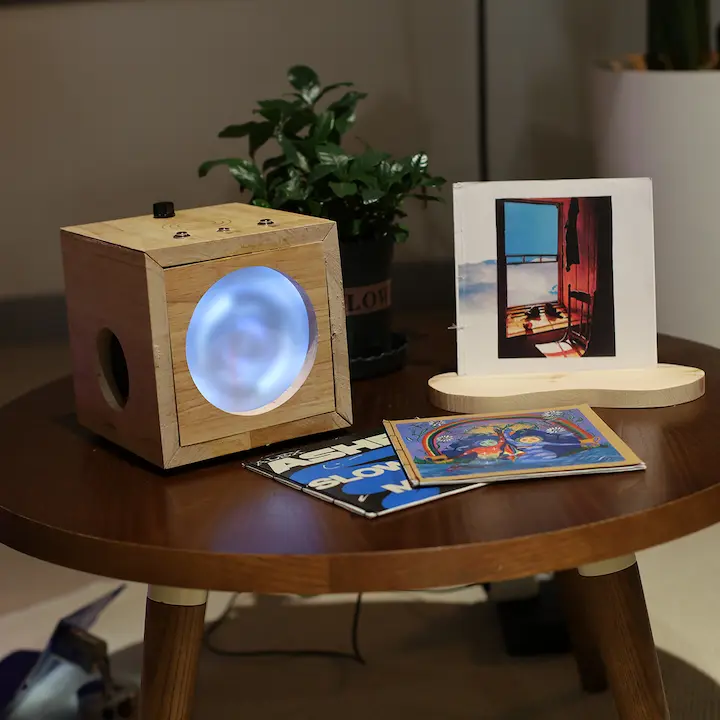 Inspired by the tactile experience of vinyl listening, LUMEN enables a slower, more engaging journey for listeners, and a more sustainable financial model for music creators. The result is a meditative listening experience born from the intersection of digital and physical media.